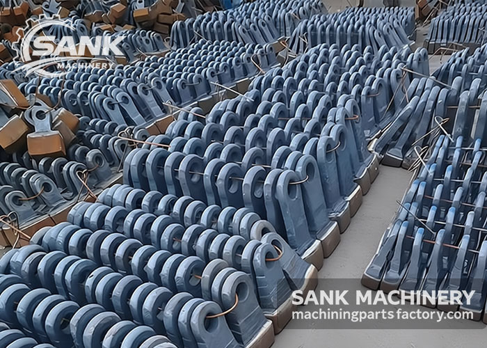 SANK Machinery – Custom Large Non-Standard Mechanical Components Manufacturing Facility Capable of producing components based on customer drawings and specifications. Mining Equipment Parts include: Rotary KilnBall Mill Large Gear Ring, Rotary Kiln Ring, Rotary Kiln Pinion Gear, Rotary Kiln Support Rollers, Crusher main shaft, Jaw Crusher Jaw Plate, Cone Crusher Bowl Liner, Hammer Crusher Hammer Heads, Ball Mill Liner, Ball Mill End Cover, Bronze bushing, etc.